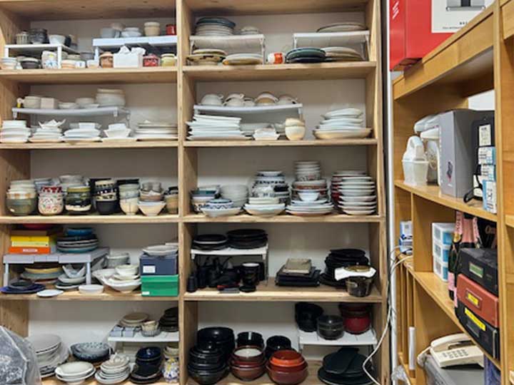 食器類グラス類などの備品ストックルームもございます。(*ストックルーム使用に関してはお問い合わせください)